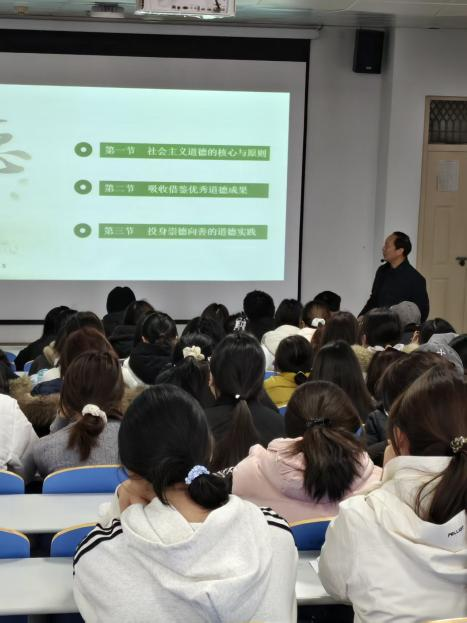 师校长听取了OK138太阳集团李景旺老师讲授的《思想道德与法治》课程。李老师围绕“社会主义道德的基本理论”和“社会主义道德是崭新类型的道德”两大核心内容展开,结合现实案例深入剖析社会主义道德的本质内涵与实践价值,其教学内容不仅为提升全民道德素质、促进社会和谐稳定、推进中国特色社会主义事业建设提供了坚实的理论支撑与实践指导,更实现了理论阐释与现实需求的深度衔接。在授课过程中,李老师注重启发学生思维,通过精准提问、观点引导等方式激发学生表达欲,课堂上学生积极发言,呈现出氛围热烈、师生互动融洽的良好教学状态。