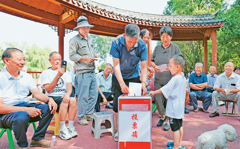 基层监督是党和国家监督体系的重要组成部分,是确保基层权力正确运行的重要保障。图为2025年7月19日,江苏省宿迁市泗洪县上塘镇垫湖村村民代表对镇、村干部工作作风和实绩进行评议。 人民图片 许昌亮/摄