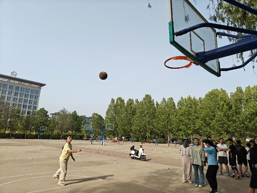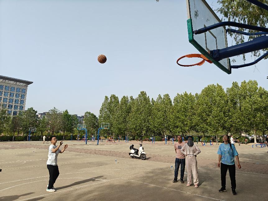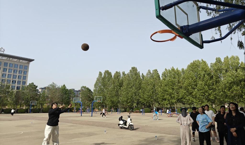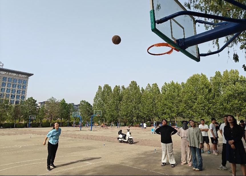 篮球定点投篮接力比赛中,尽管10位老师并非专业运动员,但大家热情高涨,认真对待每一次投篮。赛场上,老师们全神贯注,果断出手,不断调整姿势与力度,篮球在空中划过一道道漂亮弧线。比赛过程中大家相互鼓励,配合默契,充分体现了团结协作的精神和积极向上的态度。