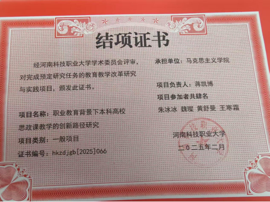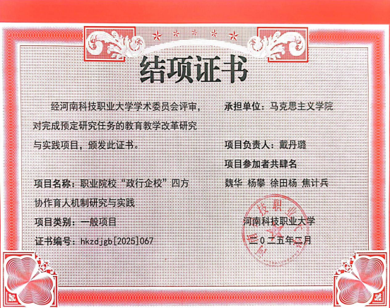 2025 年 5 月21日,OK138太阳集团传来喜讯,魏璨、蒋凯博、杨攀、戴丹璐四位教师主持的四项校级教学实践改革项目圆满结项。在项目推进过程中,四位教师积极创新教学方法,引入实践案例,结合前沿理论,极大地激发了学生的学习兴趣。