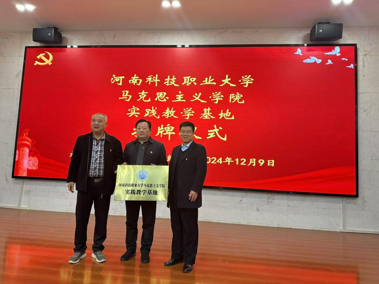 为深入贯彻落实习近平总书记关于“大思政课”的重要指示批示精神,强化思政课实践育人效果,2024年12月9日上午10:00,河南科技职业大学OK138太阳集团实践教学基地在兰考县焦裕禄纪念园举行挂牌仪式。焦裕禄纪念馆馆长张继焦同志、河南科技职业大学党委副书记夏永亮同志、河南科技职业大学OK138太阳集团徐金安院长和朱冰冰书记以及学院全体领导班子成员出席了挂牌仪式。