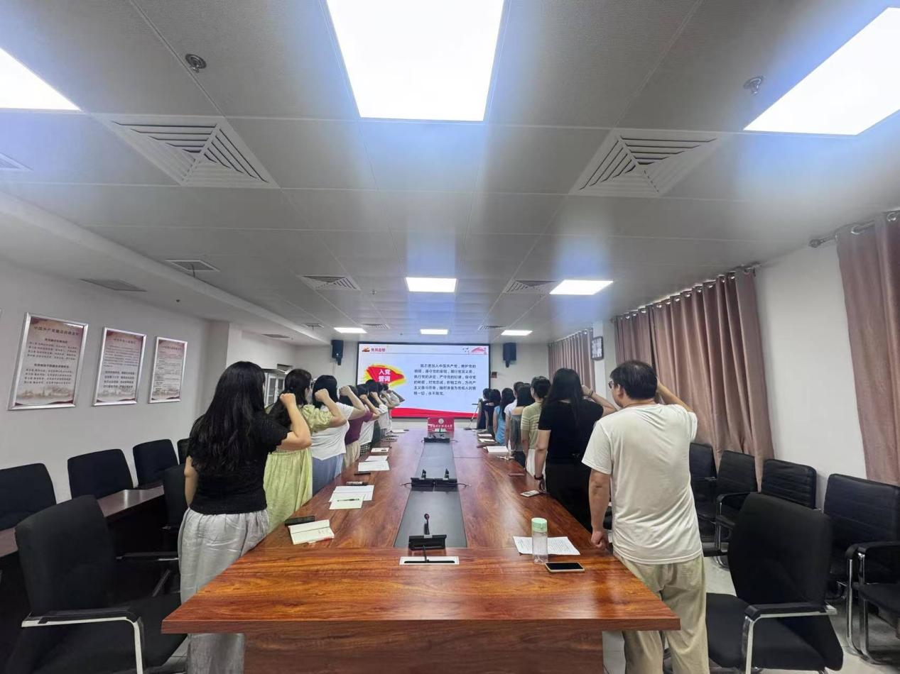 转正仪式结束后,大会进入了激动人心的入党宣誓环节。在领誓人戴丹璐同志的带领下,全体党员同志面向鲜红的党旗,高举右拳,庄严宣誓:“我志愿加入中国共产党……”,誓言铿锵有力,表达了他们对党的无限忠诚和为共产主义事业奋斗终身的坚定信念。