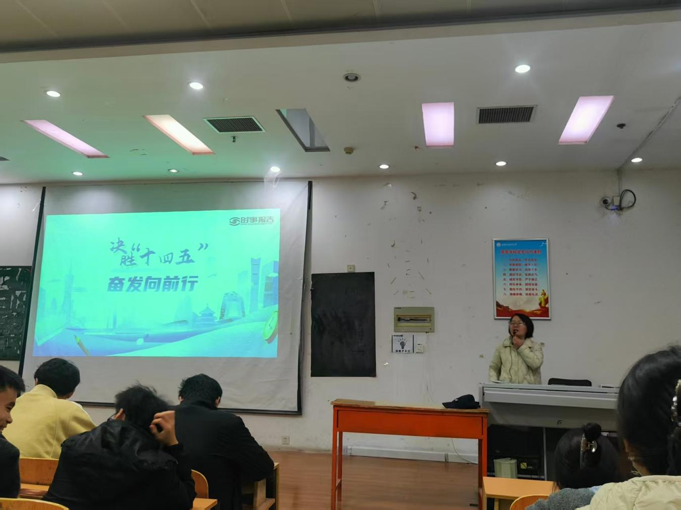 2025年10月21日,我院党总支书记孟丽平以“决胜十四五,青春勇担当”为主题,在综合楼西南一教室为学生讲授了一堂生动的思政课。课程围绕“十四五”规划的核心要义与青年责任,结合当前形势政策与学校特色,引导学生深刻理解新时代的使命担当。